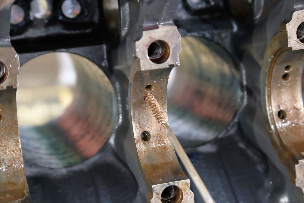 - I pressure-washed everything of the block. Internally and externally paying specific attention to the bolt holes and lube-oil passages.