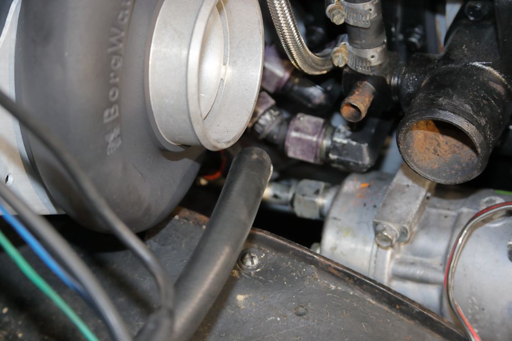 With that, the suction-line is further away from that compressor-housing and can still comfortably duck under the neighboring hot charge-air tube going to the IC and air-filter ducting: